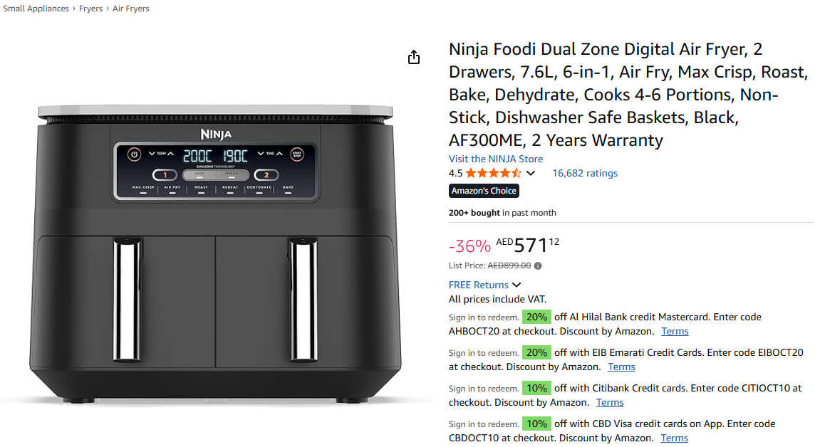 - المبيعات والعروض المنتظمة استعدوا لتوفير هائل مع أمازون الإمارات العربية المتحدة التي تُطلق خصومات كبيرة خلال رمضان، والعيد، والجمعة السوداء، وغيرها من المناسبات المهمة، احصلوا على أفضل العروض على الإلكترونيات والأزياء خلال الجمعة السوداء والعيد، أو جددوا منازلكم بعروض رمضان على الضروريات، للاطلاع على عروض رمضان، تصفحوا نون لأفضل العروض باستخدام كود الخصم 100 درهم.