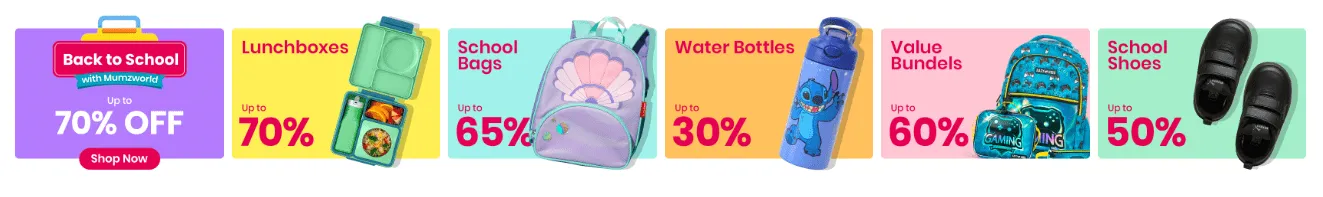 احصل على خصم ضخم يصل إلى 70% على أجمل وأجود أغراض العودة إلى المدرسة التي تحتاجها، بما في ذلك حقائب مدرسية، الأدوات المكتبية، باقات تتكون من حقائب وأدوات مدرسية، صناديق الغداء، وزجاجات المياه، لا تتردد، فقط قم بزيارة ممزورلد الآن وتسوق كل ما تحتاجه من مستلزمات المدرسة.
