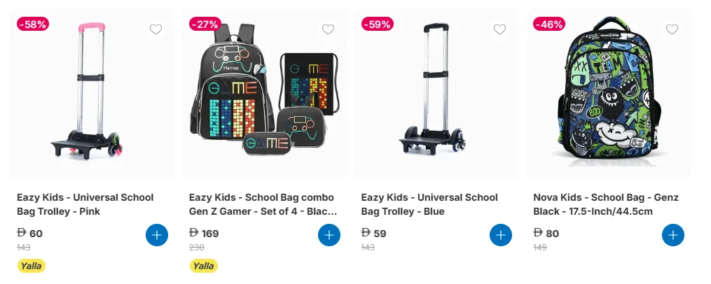 - يوفر جميع أغراض العودة إلى المدرسة التي تحتاجها في مكان واحد، بما في ذلك حقائب مدرسية، الأدوات المكتبية، صناديق الغداء، وزجاجات المياه.