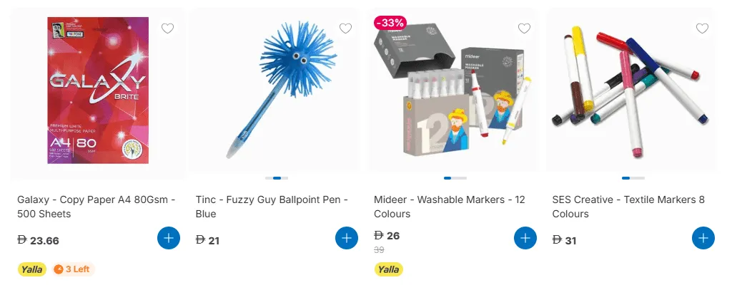 - يقدم منتجات مدرسية عالية الجودة بأسعار مناسبة، لتتمكن من شراء جميع مستلزمات طفلك دون إنفاق مبالغ كبيرة.