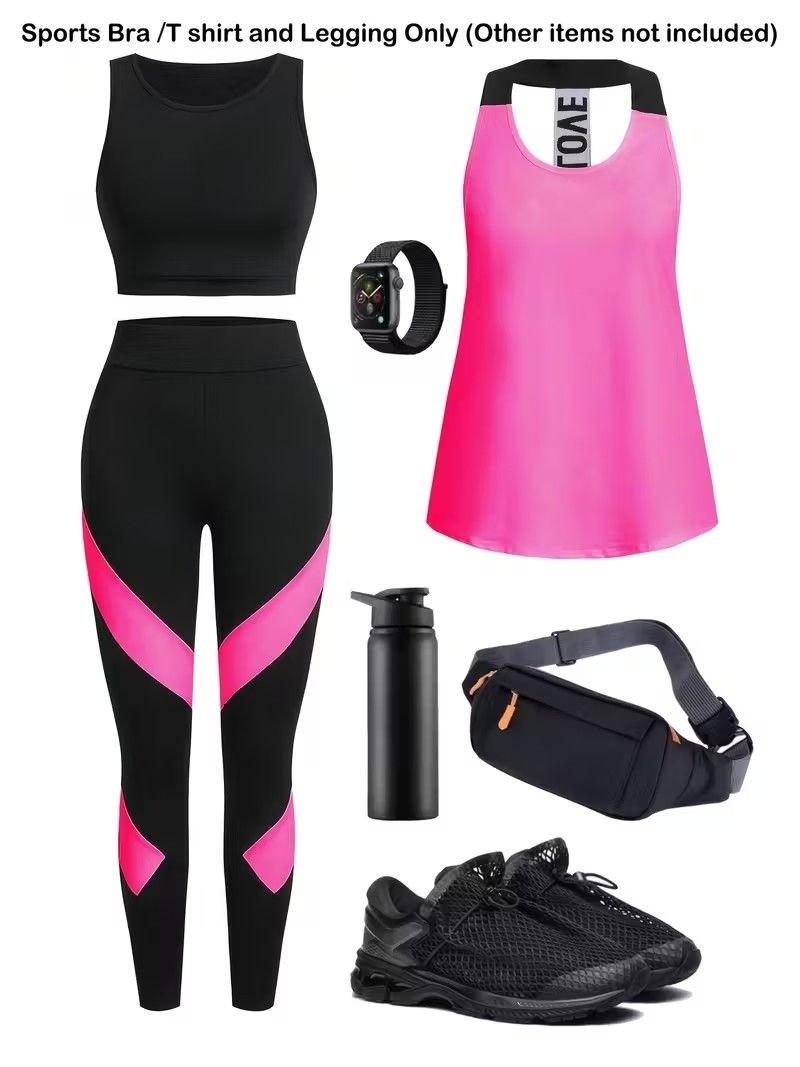 طقم يوجا خارجي 3 قطع (توب + تايت + تيشيرت)
