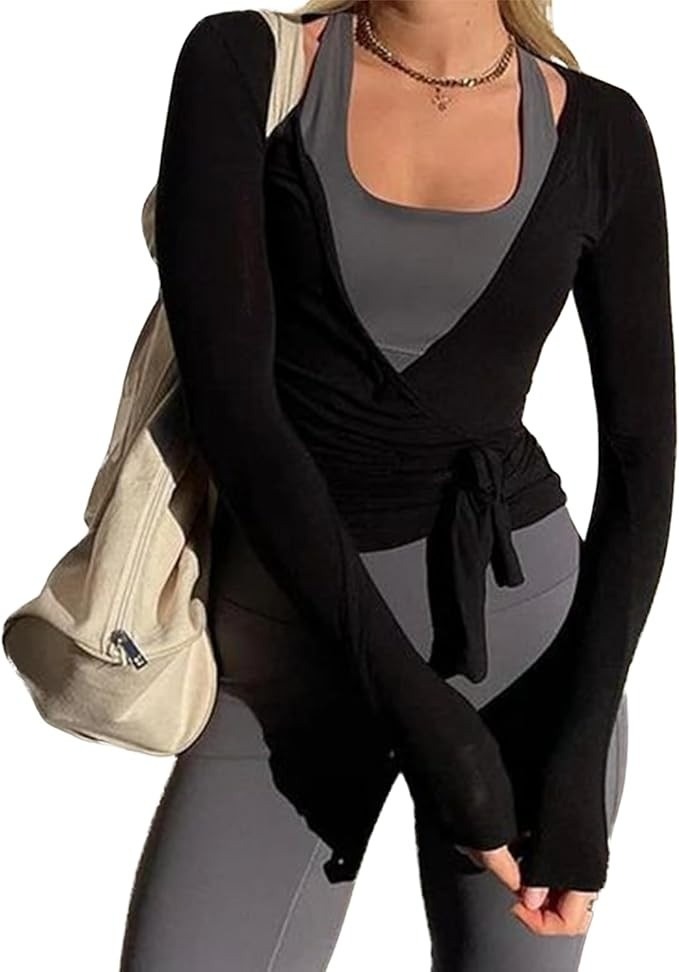 تيشيرت يوجا لف للنساء (أكمام طويلة وربط أمامي)