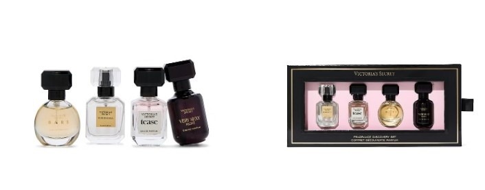This Victoria’s Secret fragrance set includes four mini Eau de Parfum perfumes featuring different scent profiles ranging from fruity floral to warm gourmand notes.
