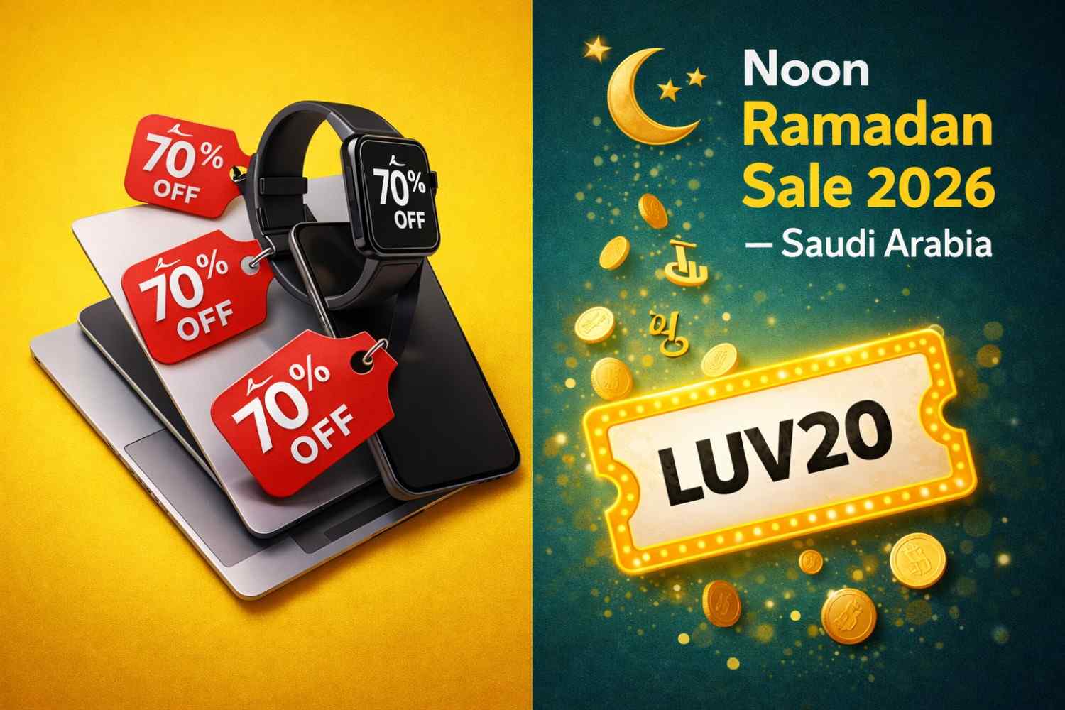 The sale runs January 28 through February 14, 2026. Peak discounts on electronics fall between February 5–12. Amazon KSA launches 7 days earlier than Noon, giving early shoppers a head start on electronics deals.